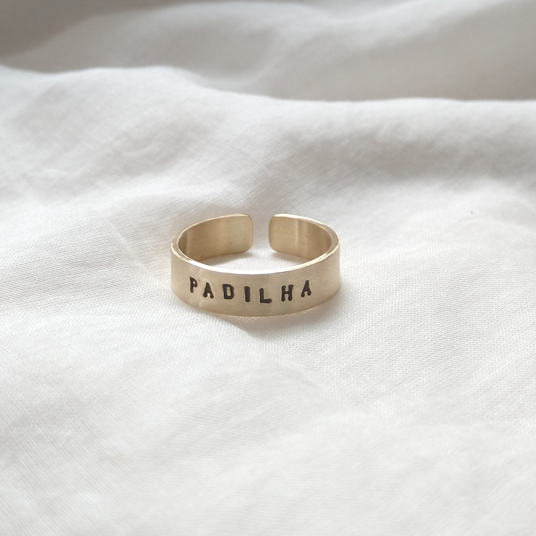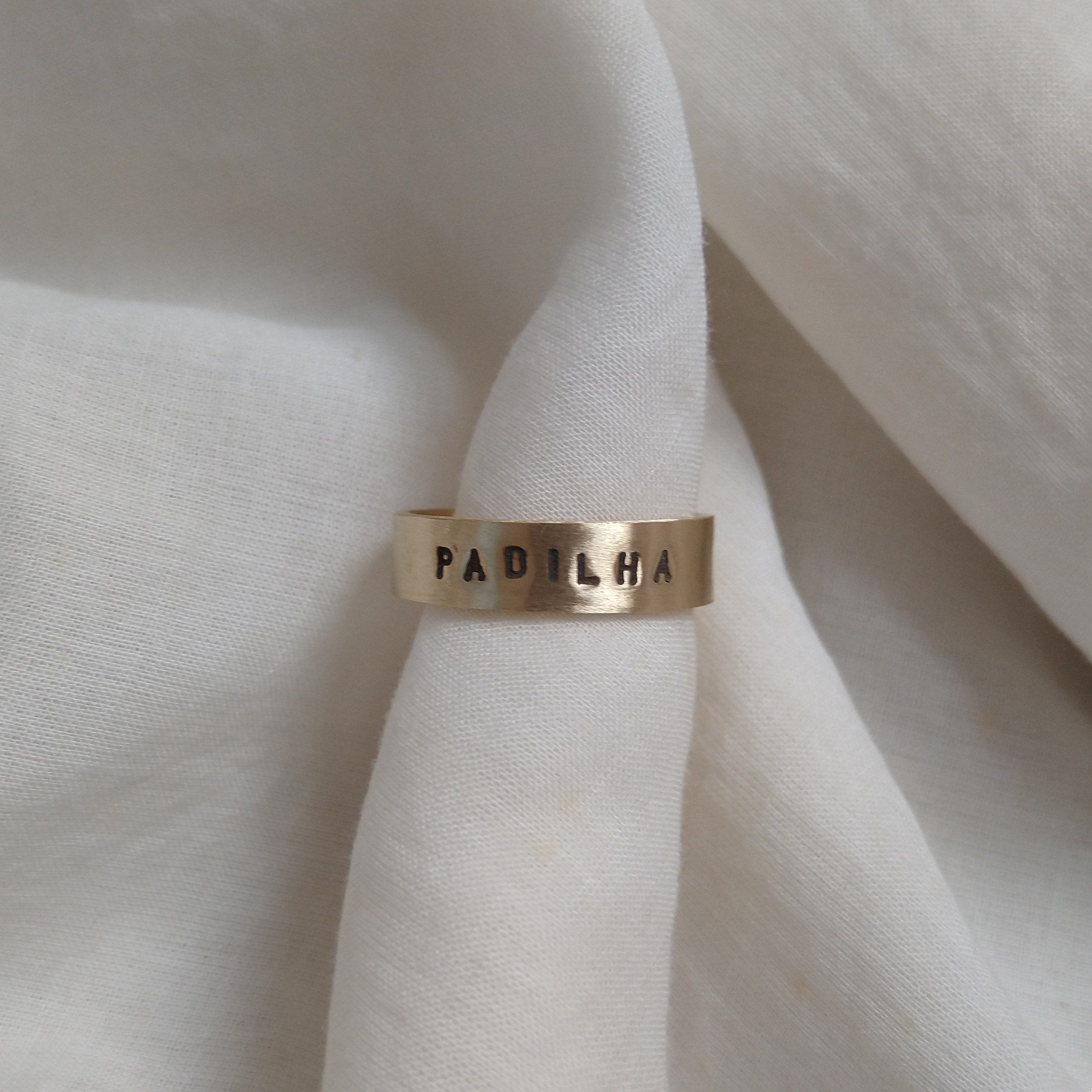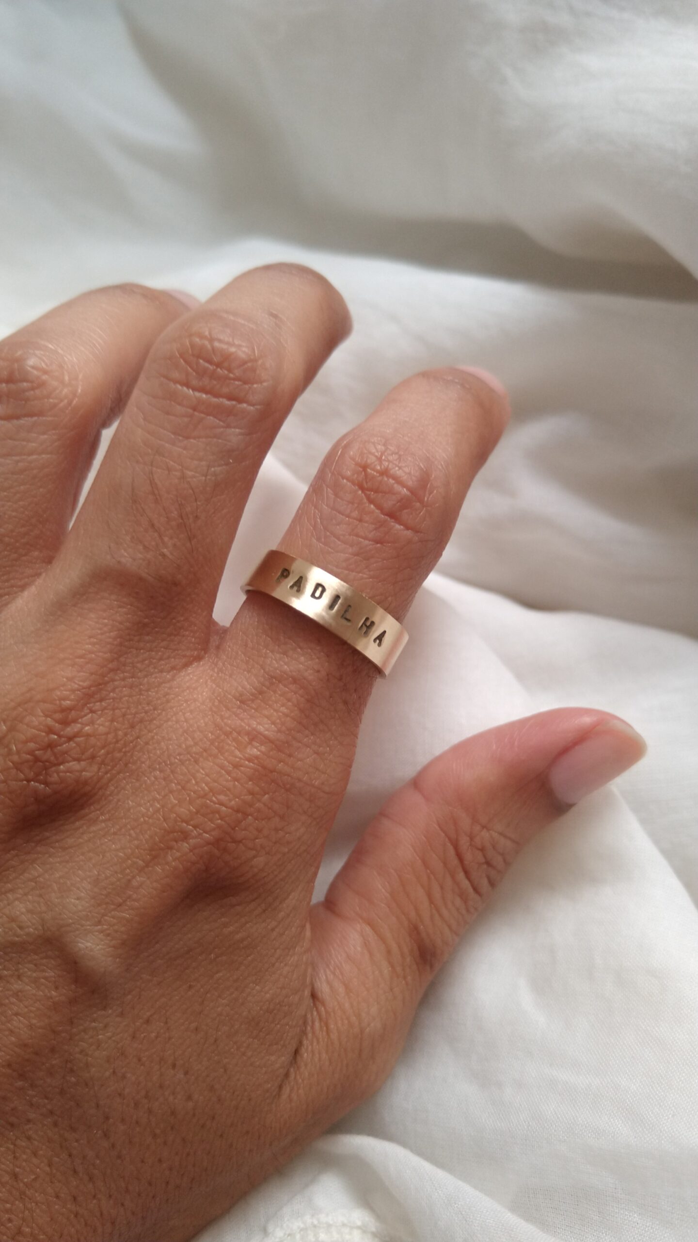 Nosso anel a palavra PADILHA gravada manualmente é simplesmente belo e poderoso!