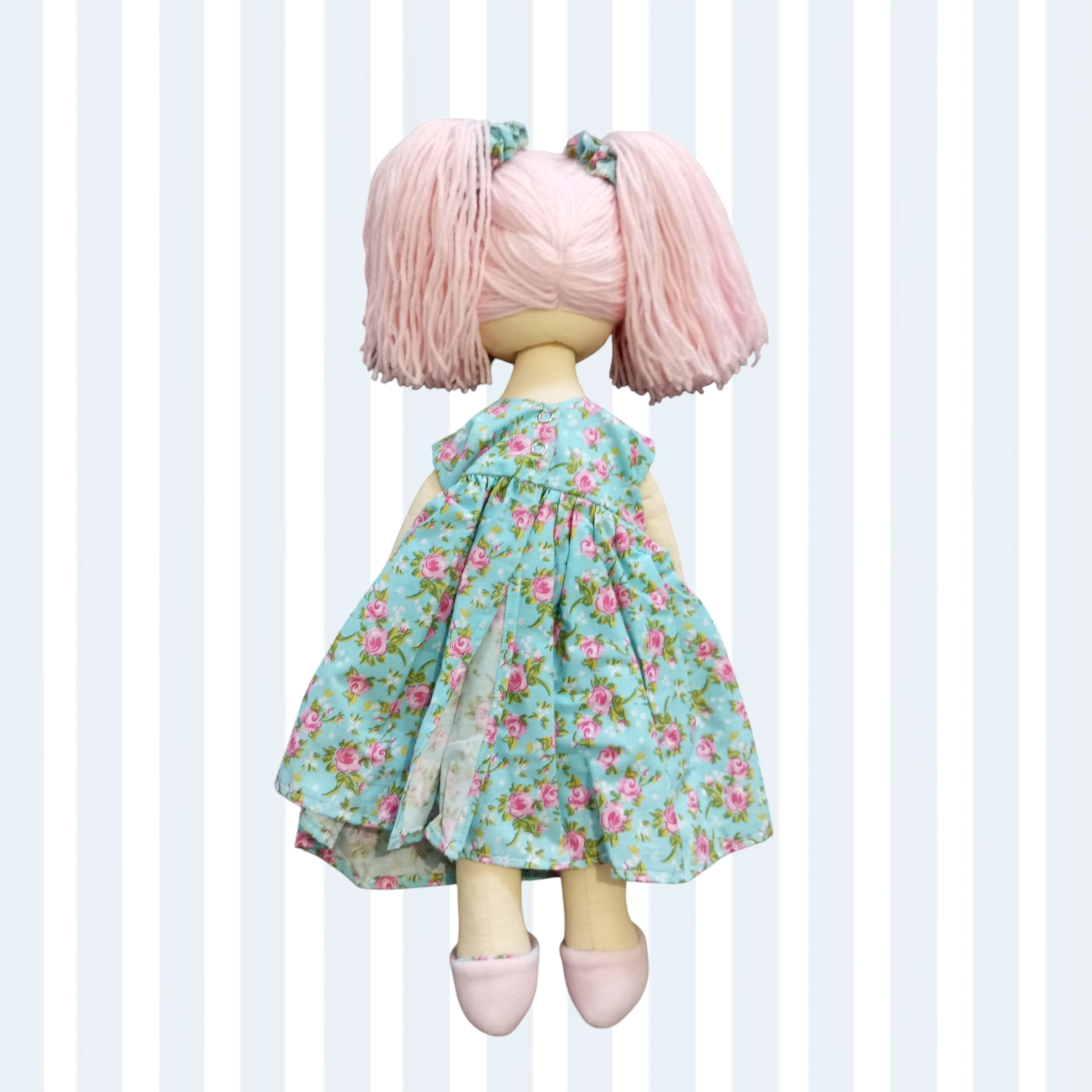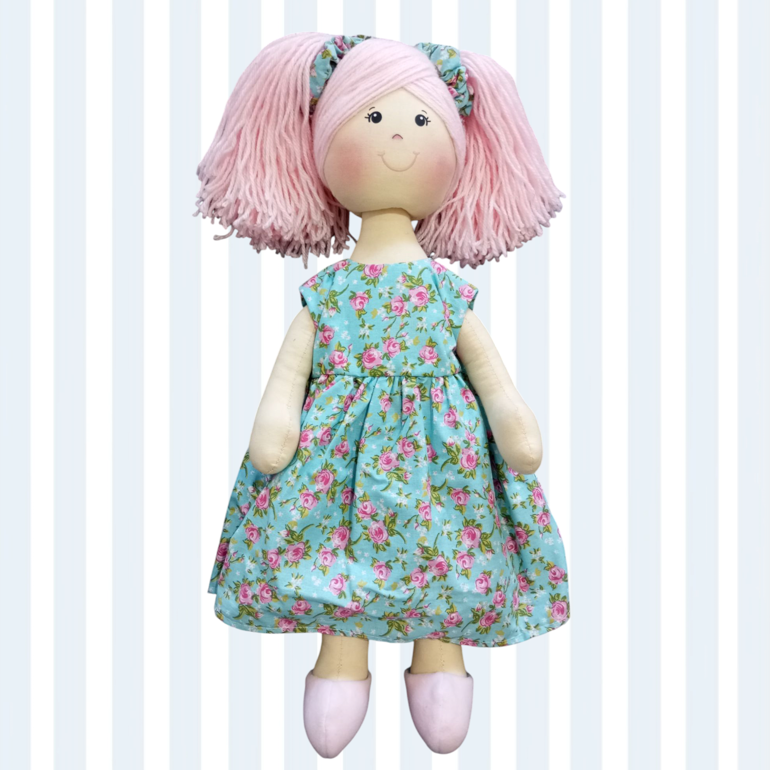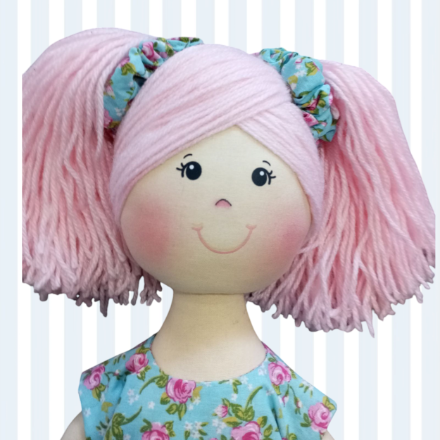 Boneca de pano confeccionada com tecido 100% algodão, cabelo de lã, enchimento fibra siliconada antialérgica.