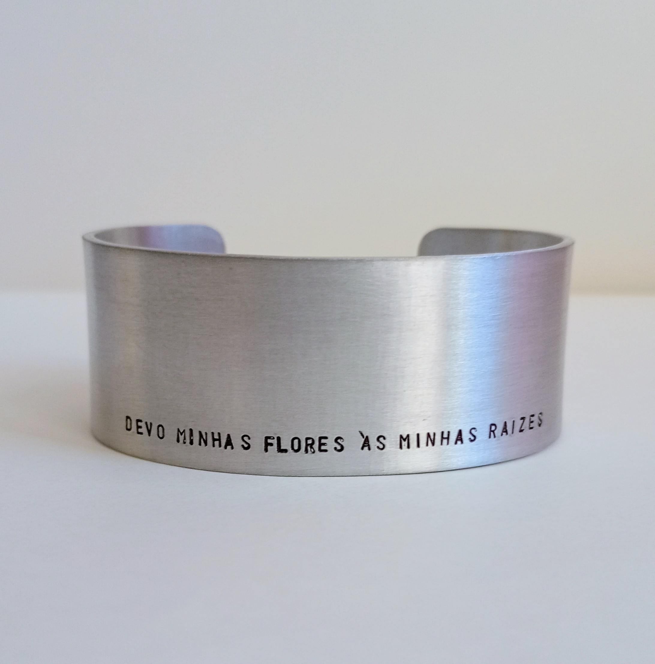 Nosso Bracelete “Devo as minhas flores à minhas raízes” é um modelo simples e impactante.