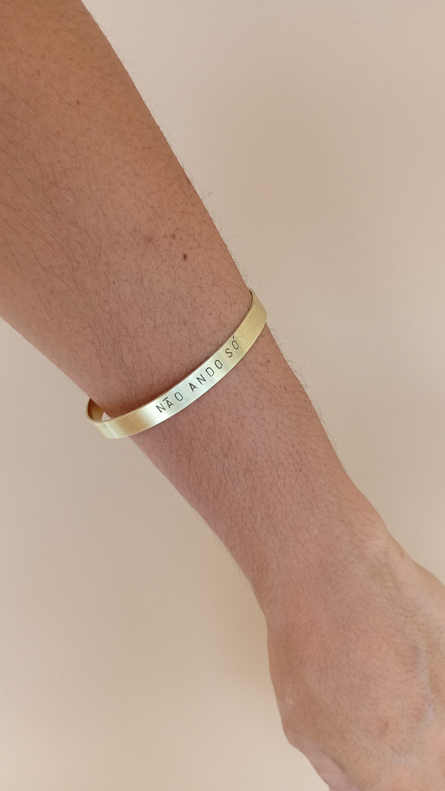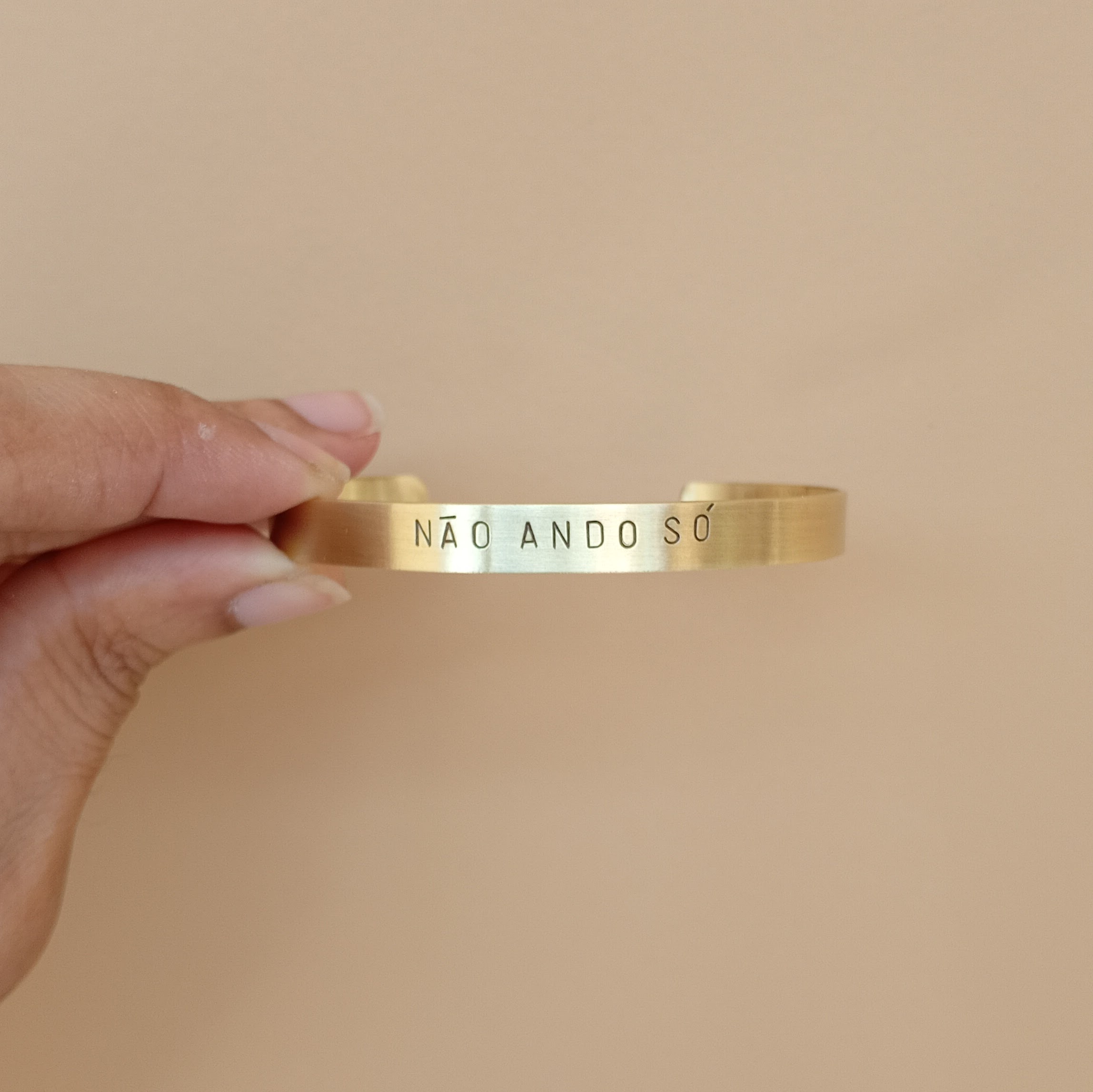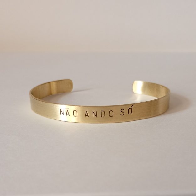 Nosso bracelete é um amuleto de fé. A frase “Não ando só” é um lembrete da nossa fé, força e coletividade. A gravação é manual, ele é leve e resistente, perfeito para brilhar em qualquer ocasião.