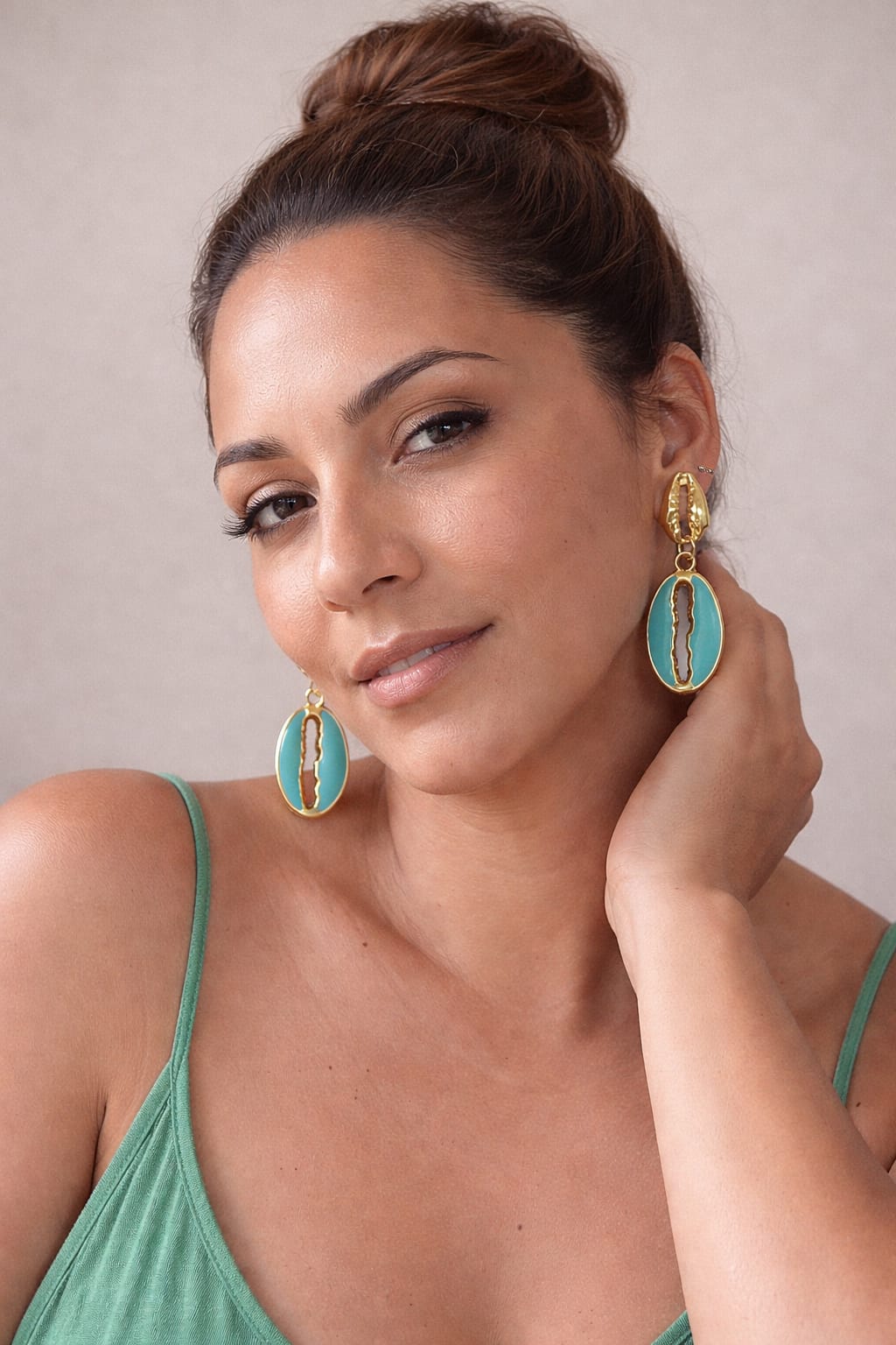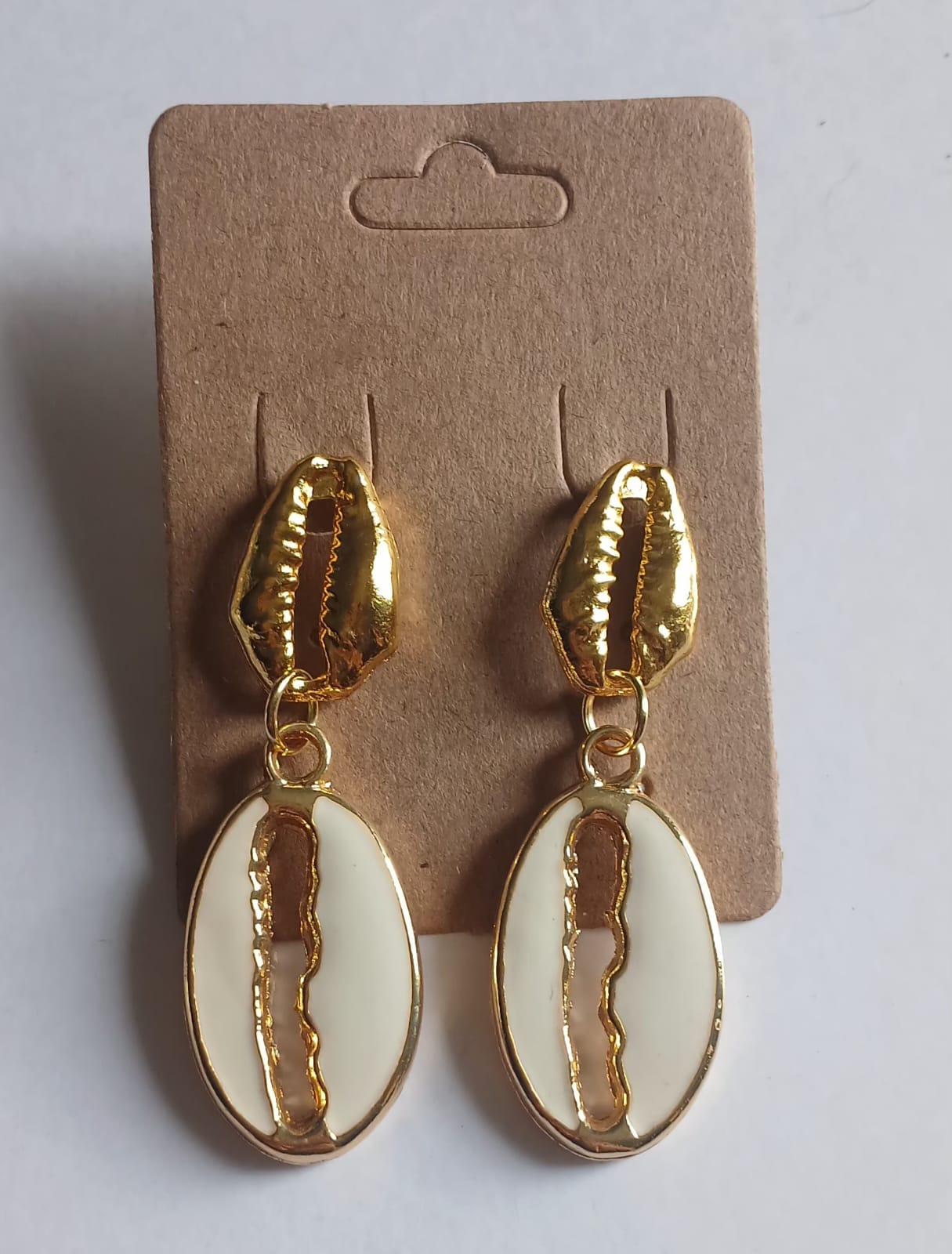 O Brinco Ayana Búzios traduz a elegância natural do mar com a força da ancestralidade africana. Com acabamento resinado, traz brilho suave e proteção, valorizando a forma orgânica do búzio.