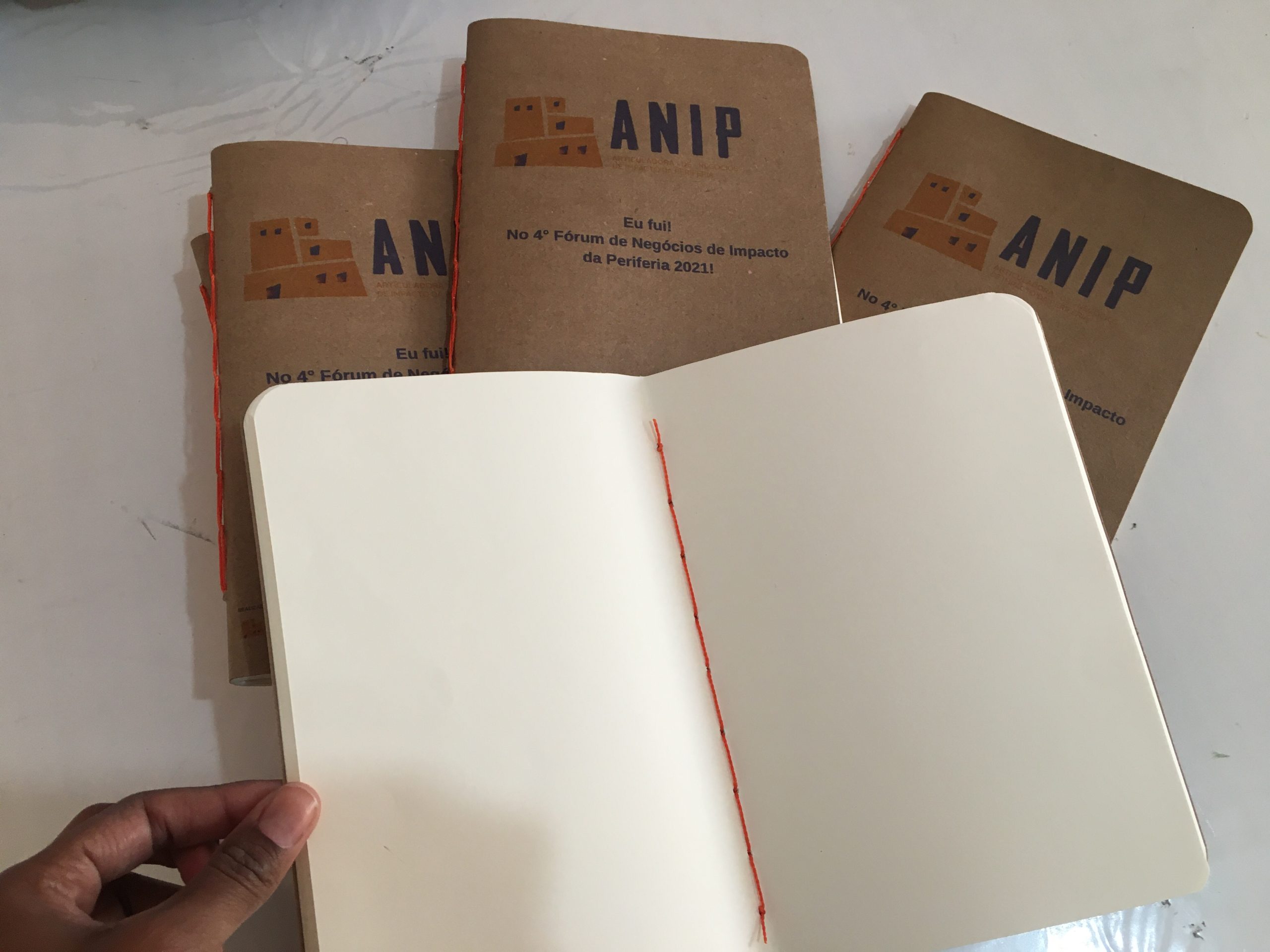 Caderno artesanal em formato A5, com capa personalizada com o logo da sua empresa e miolo com folhas sem pauta, ideal para reuniões, treinamentos, eventos e ações corporativas.