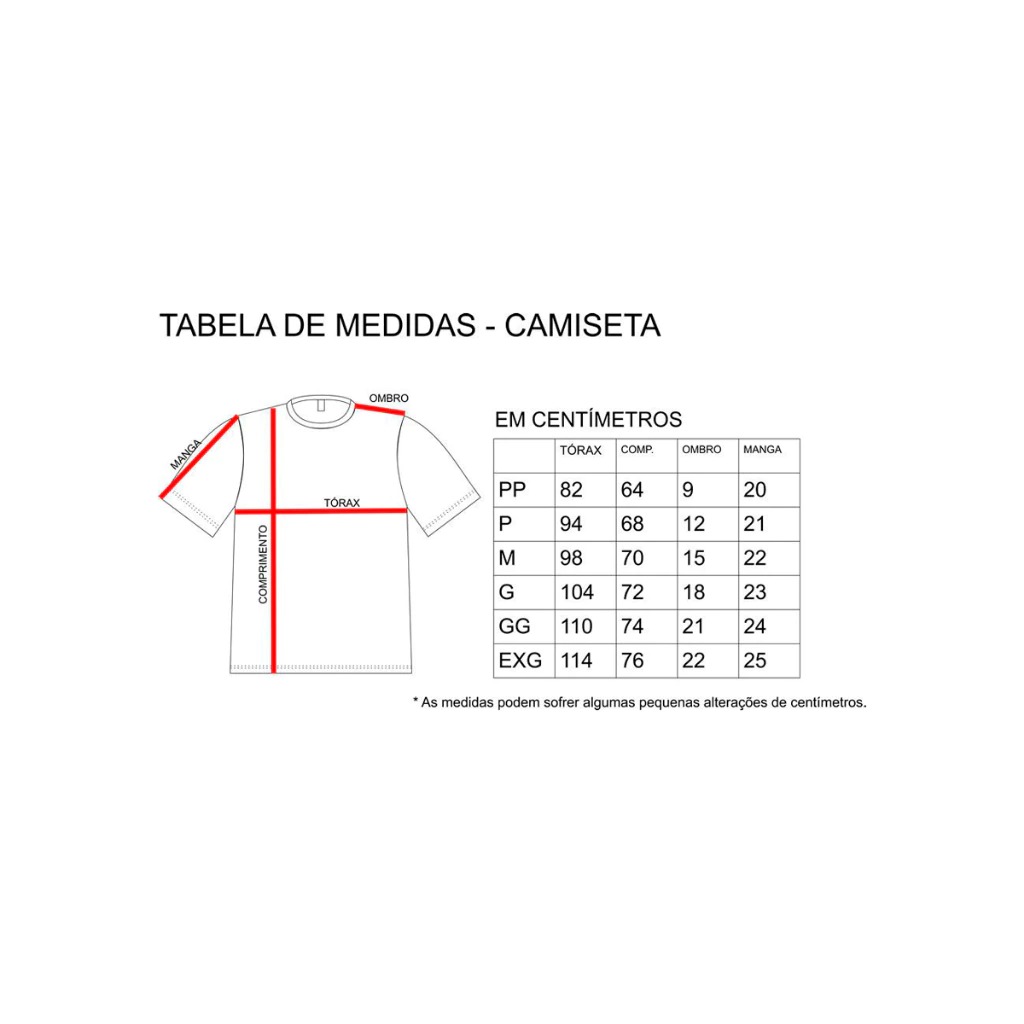 Tamanhos: P, M, G, GG e XG