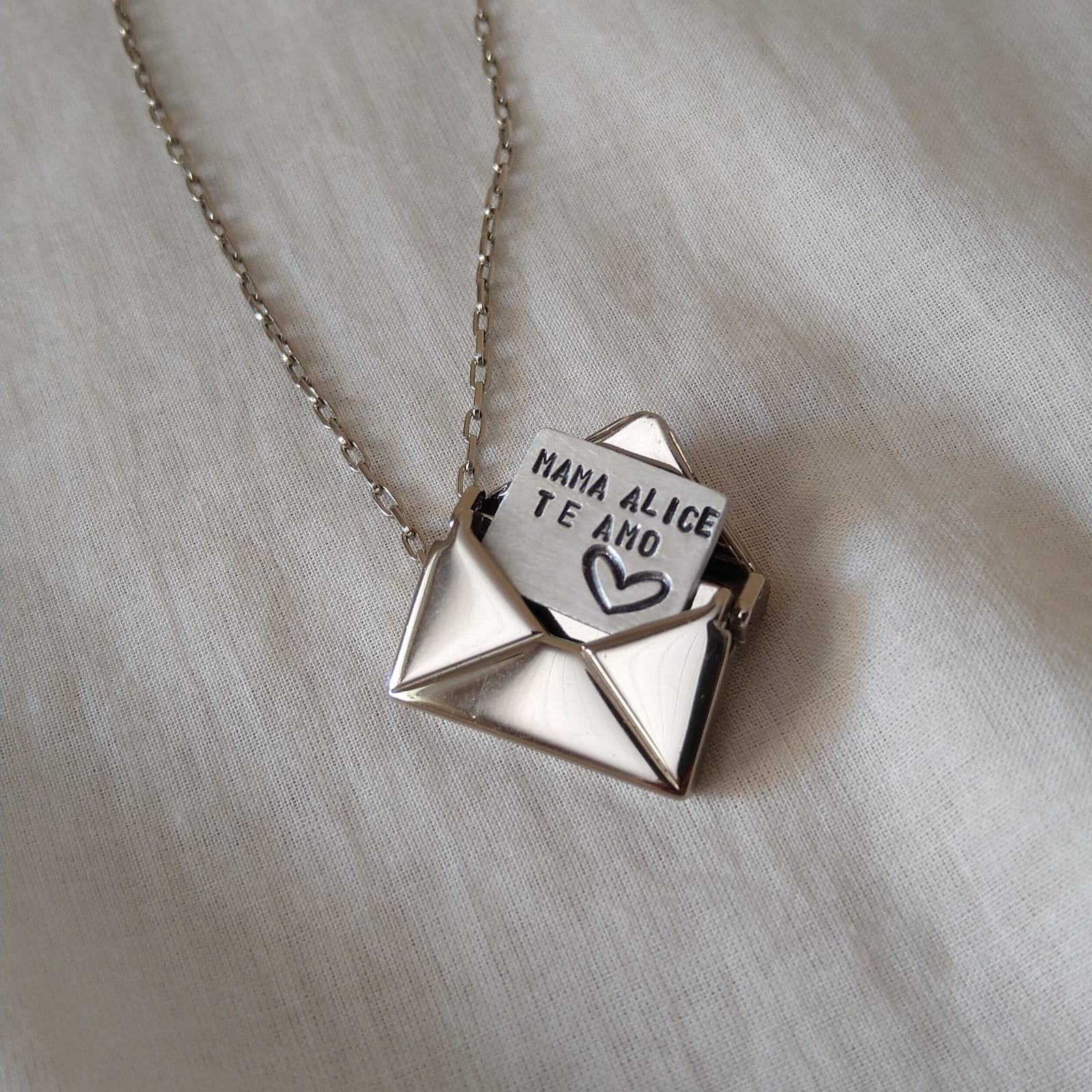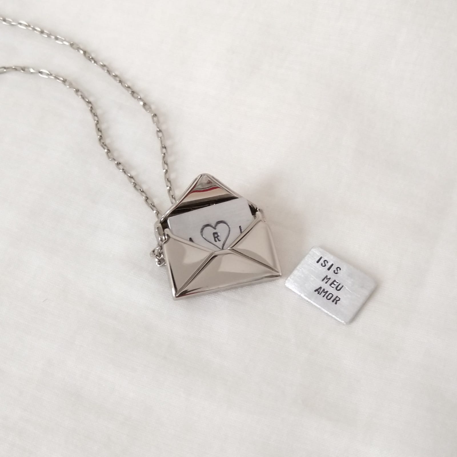 Imagine só: um pingente em formato de carta que mantém suas melhores memórias bem guardadas! Você pode personalizar a mensagem! Quem diria que um colar poderia ser tão nostálgico e amável ao mesmo tempo?