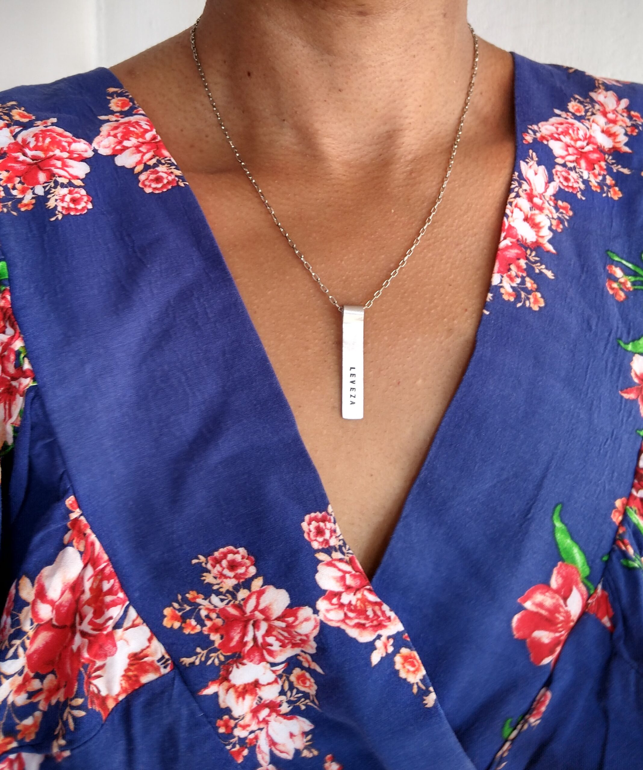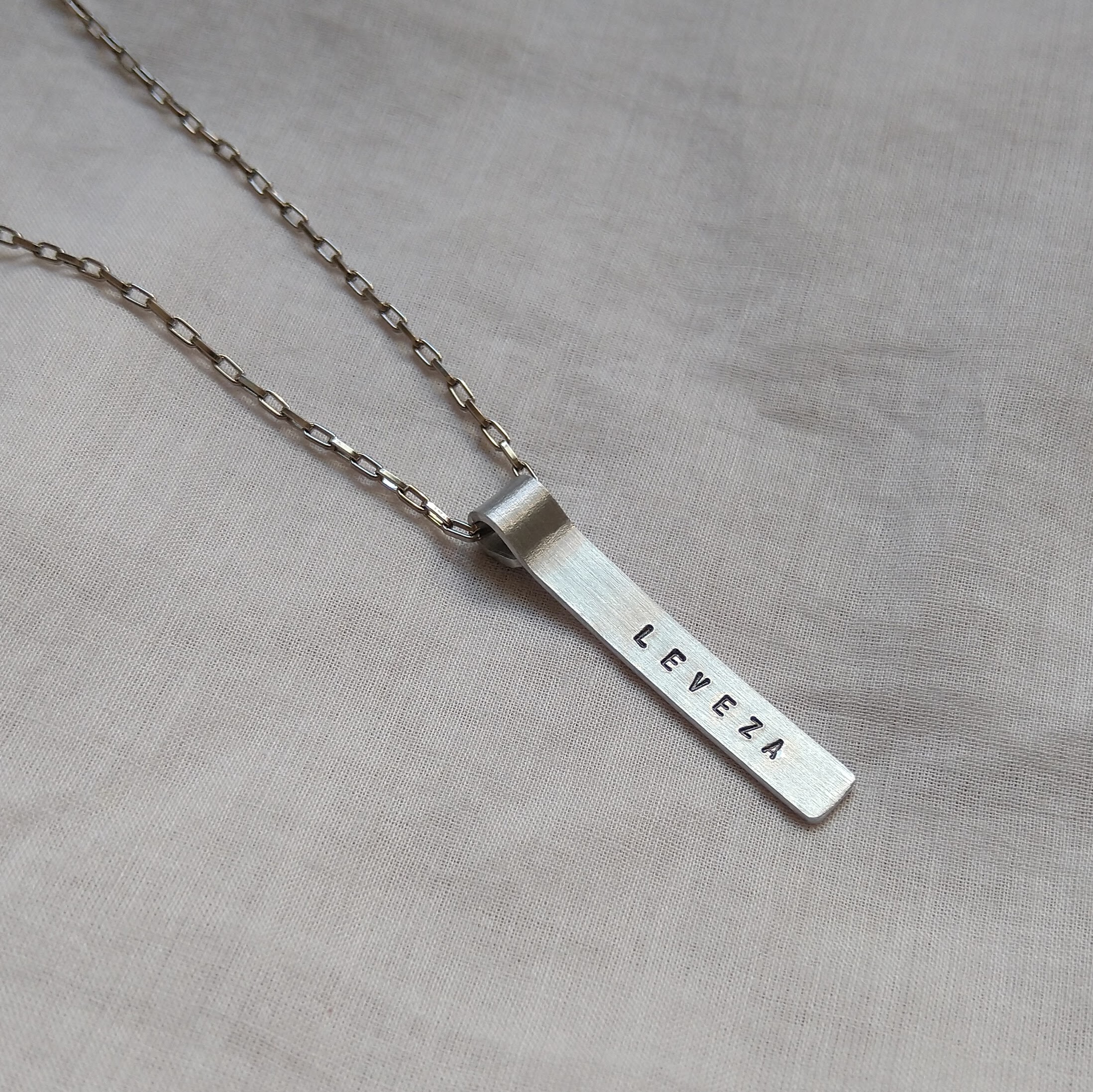 Medidas: Plaquinha: 0,5 cm de largura, 4 cm de comprimento – Corrente: 45 cm