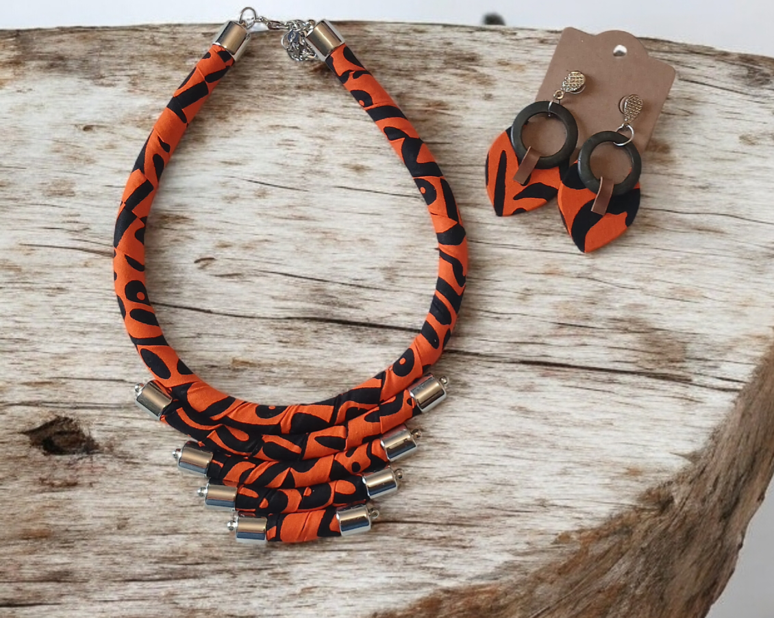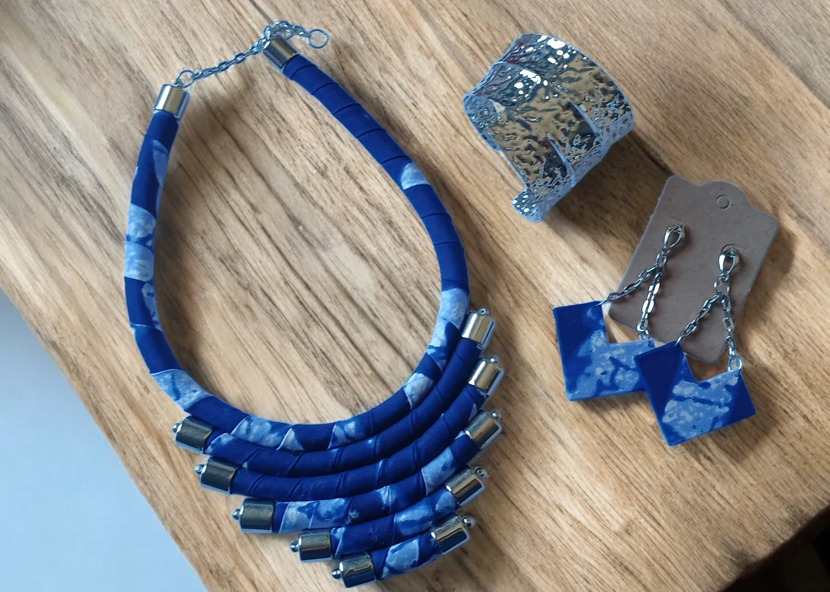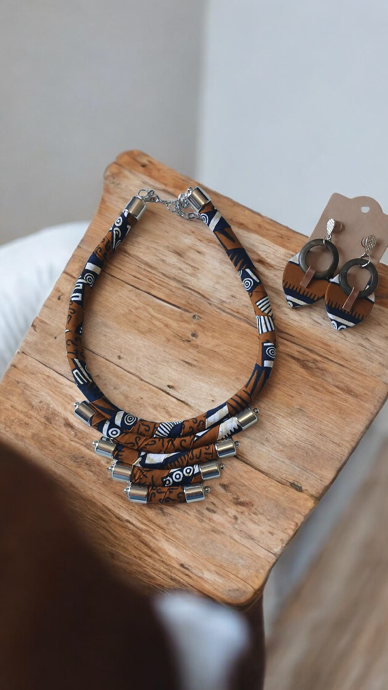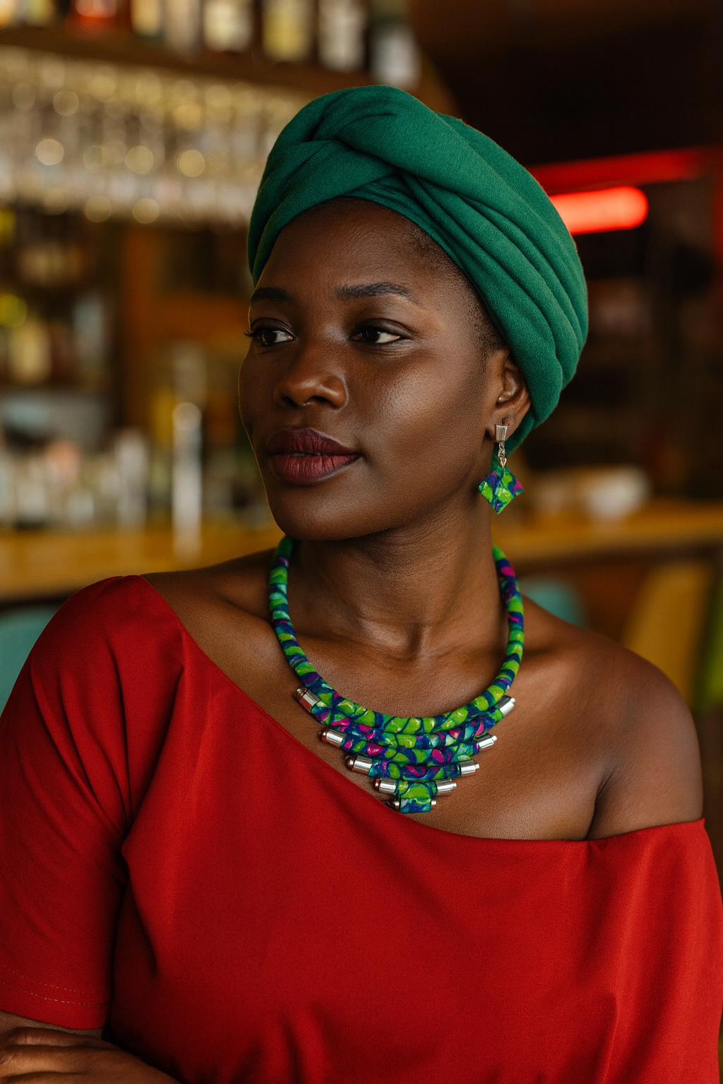 O Choker Nákira é uma peça que celebra a ancestralidade, a força feminina e a elegância contemporânea. Desenvolvido artesanalmente, ele combina tecido de estampa afro com detalhes em metal, criando um contraste marcante entre tradição e modernidade.