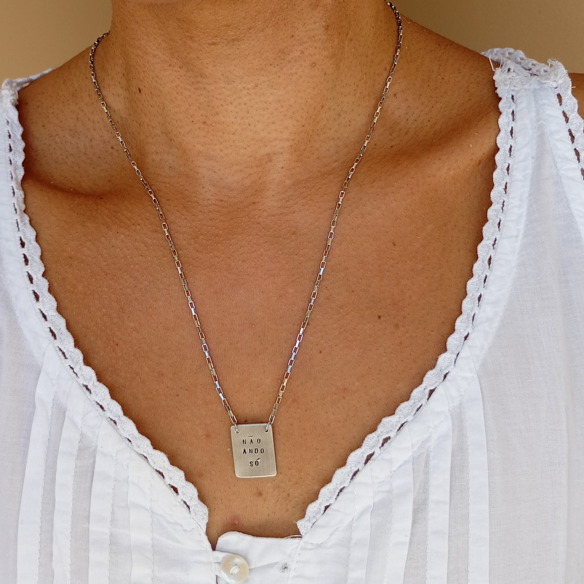 Nosso colar “Não ando só” é mais que um acessório; é uma amuleto de fé.