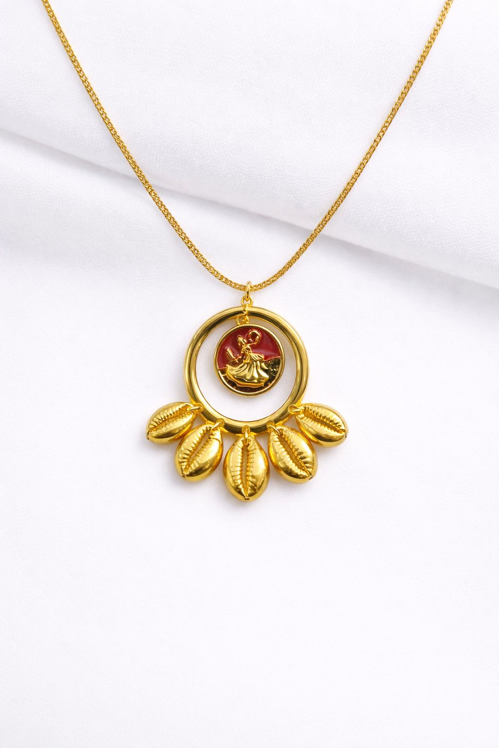Os búzios menores acompanham como guardiões. Cada um simboliza caminhos abertos, abundância e proteção espiritual. Nada é excesso. Tudo é intenção.