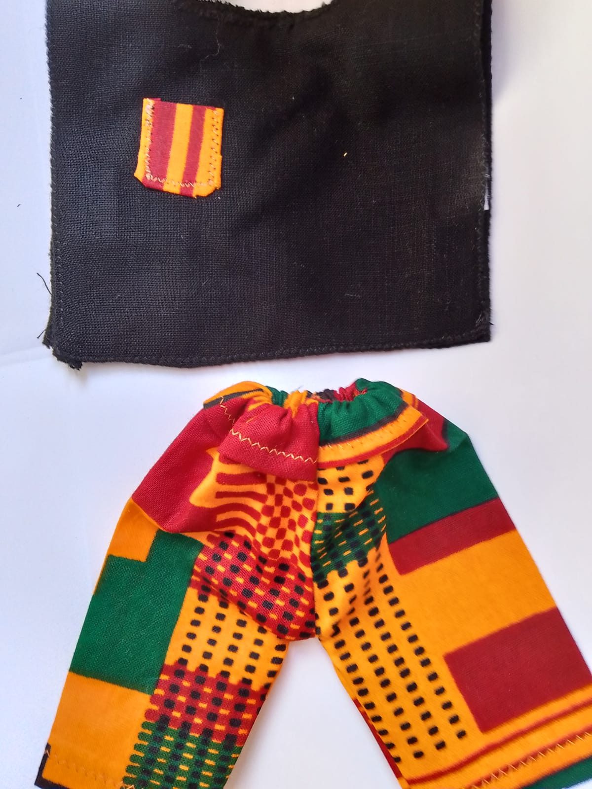 com tecido viscolinho e detalhe em tecido afro. Veste os bonecos Ken, Ken Fashionista e
