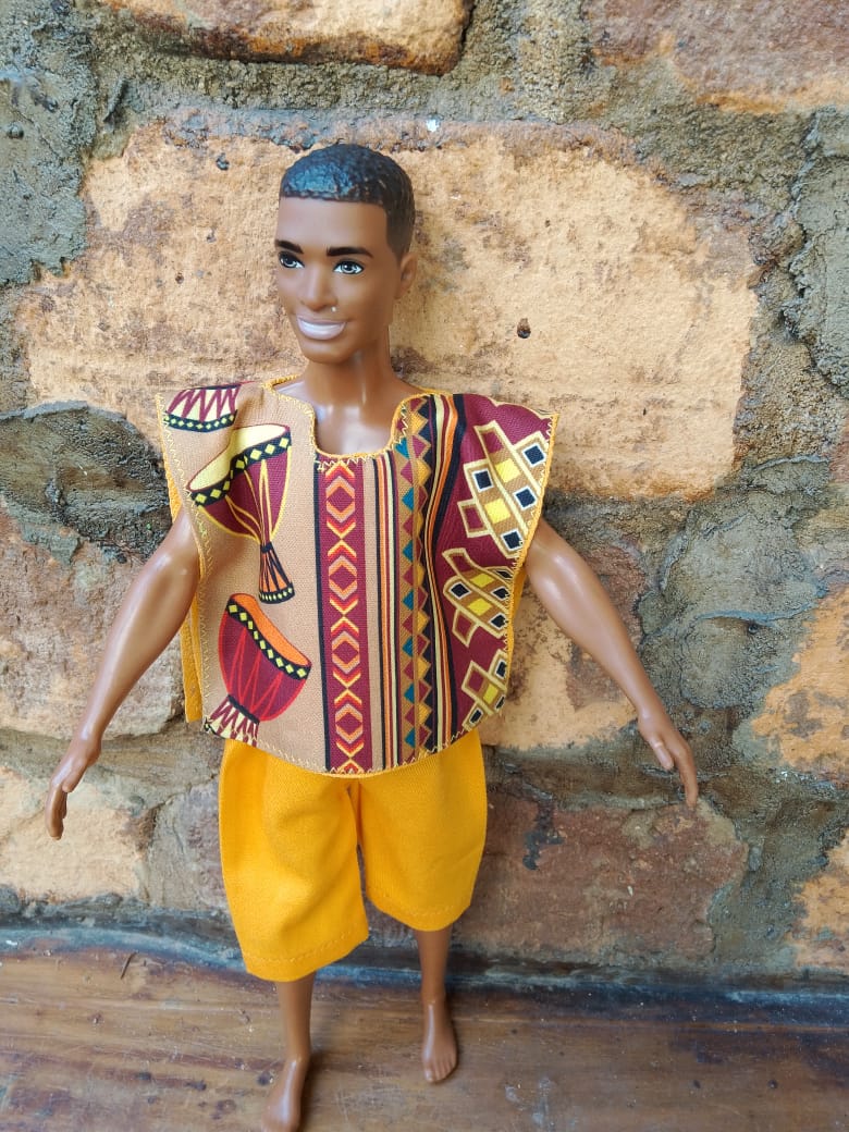 com tecido tricoline (estampa afro). Veste o boneco Ken. Pronta entrega.