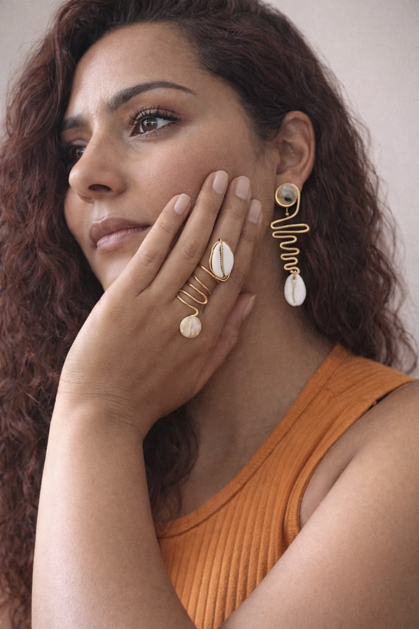 Nalani nasce do encontro entre o metal moldado à mão e o búzio — símbolo de proteção, prosperidade e ligação com o mar.