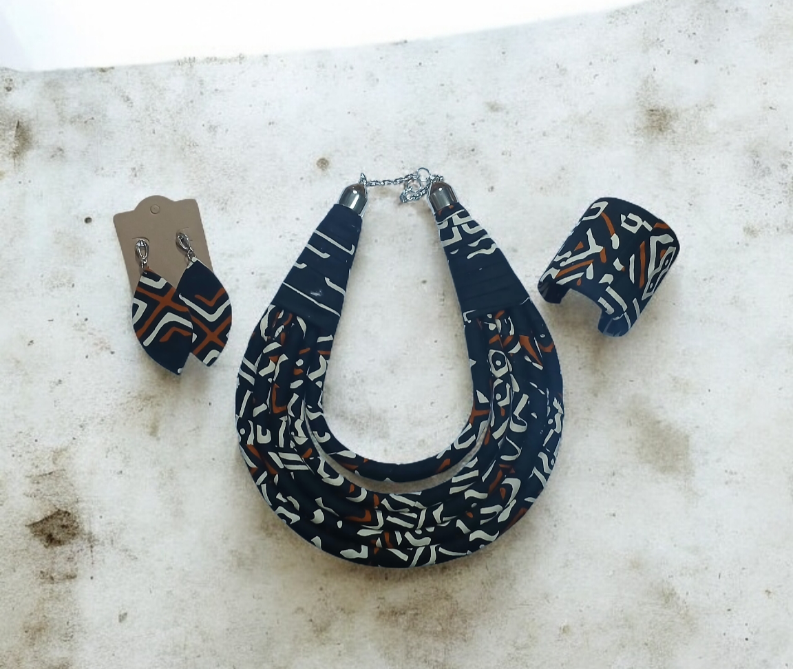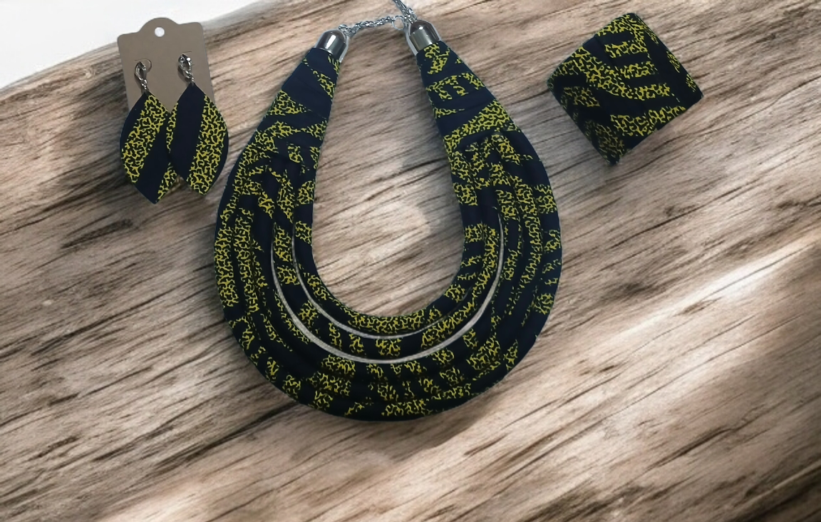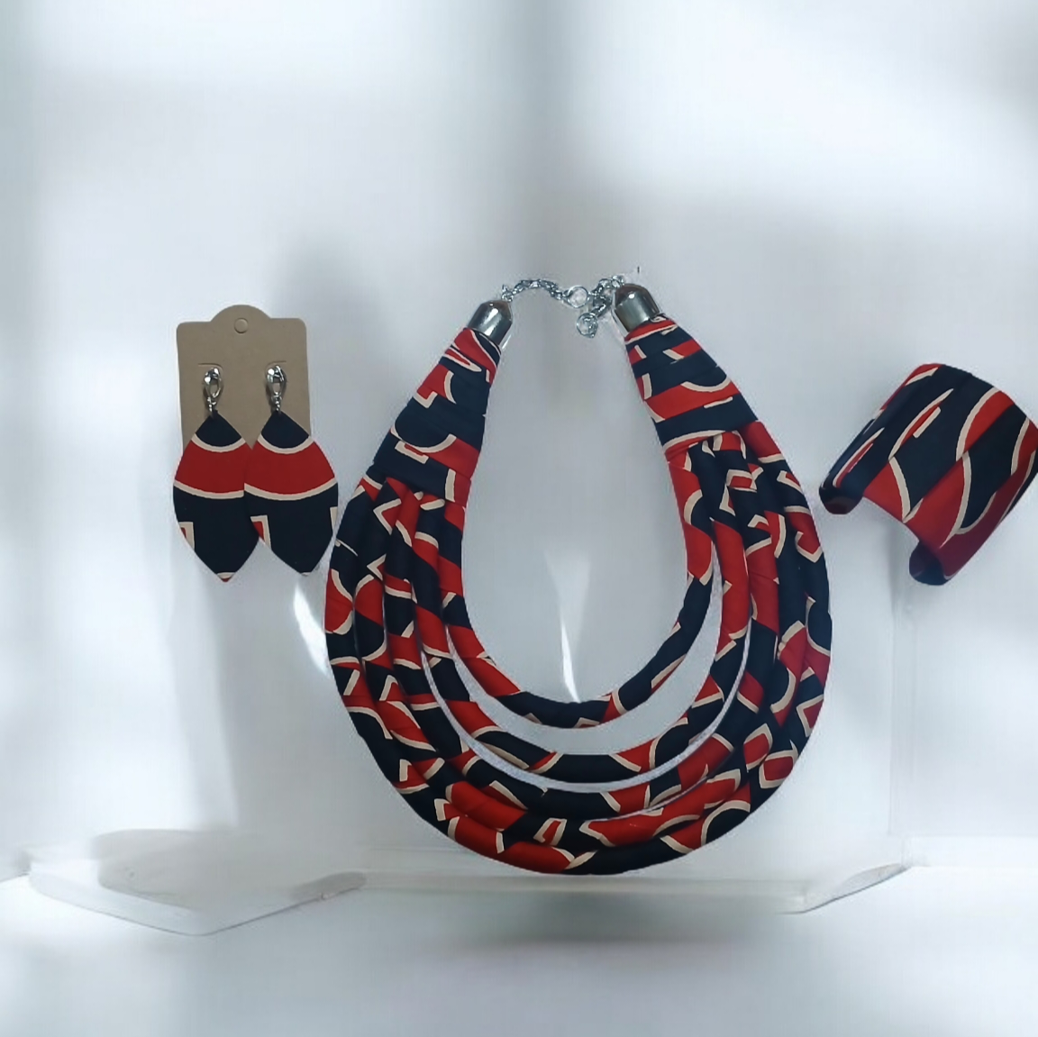 8CONJUNTO FORRADO EM CORDÃO COM TECIDO AFRICANO