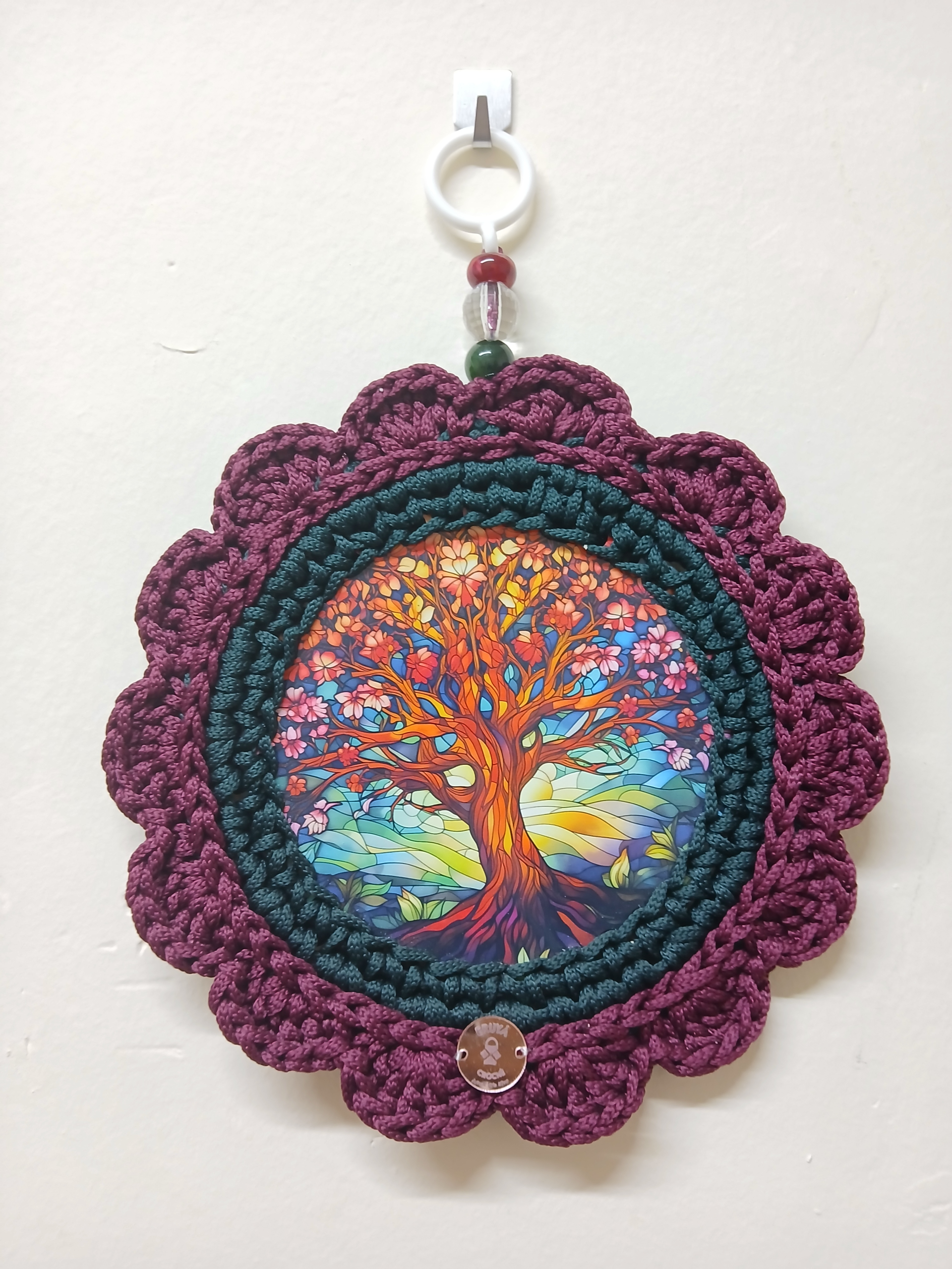 Peça decorativa autoral da Eruyá, produzida em MDF com acabamento em crochê. Cada mandala é única e carrega a força do trabalho manual aliado à estética afro.