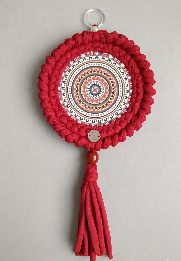 Mandala decorativa em MDF com acabamento artesanal em crochê. Uma peça que une força simbólica, identidade afro e cuidado manual, ideal para harmonizar ambientes e presentear com significado.